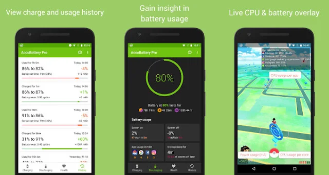 Os usuários podem ver como a energia é consumida em seu dispositivo Android na guia Descaramento. O aplicativo pode monitorar padrões de uso da bateria quando a tela está ligado ou desligado e fornecer ao usuário detalhes. Na seção de acesso ao uso do Aplicativo, você deve permitir que o aplicativo acesse as informações necessárias para que ele possa fornecer mais dados. O aplicativo pode prever o consumo de bateria por outros aplicativos ao longo do tempo e estimar a duração do carregamento com a capacidade atual da bateria.